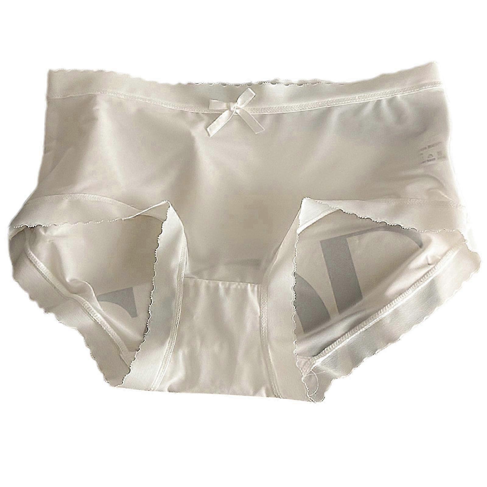Women's Middle Rise Solid Color Ice Silk Briefs Fashion Sweet Bows Panties Underwear Scalloped Trim No Show Underpants White L 2025