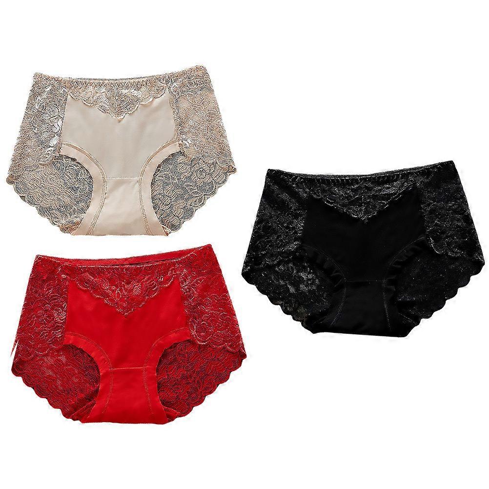 High Waisted Lace Briefs Skin Friendly Mid Waist Style For Girl Daily Wear Black 3Pack