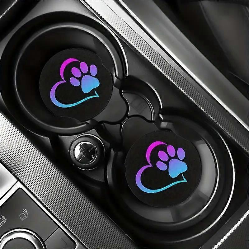 Paw Print Pattern Car Coasters, 2 Counts Non-slip Car Cup Coaster, Car Interior Decoration