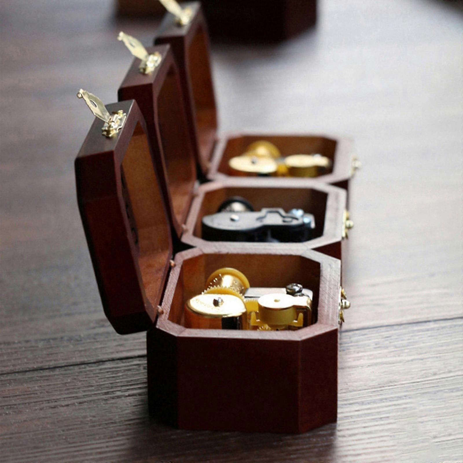 Antique Mini Wind Up Music Box Key Operated Mechanism Plays Classical Melodies Wooden Carving Musical Box Ornament pink