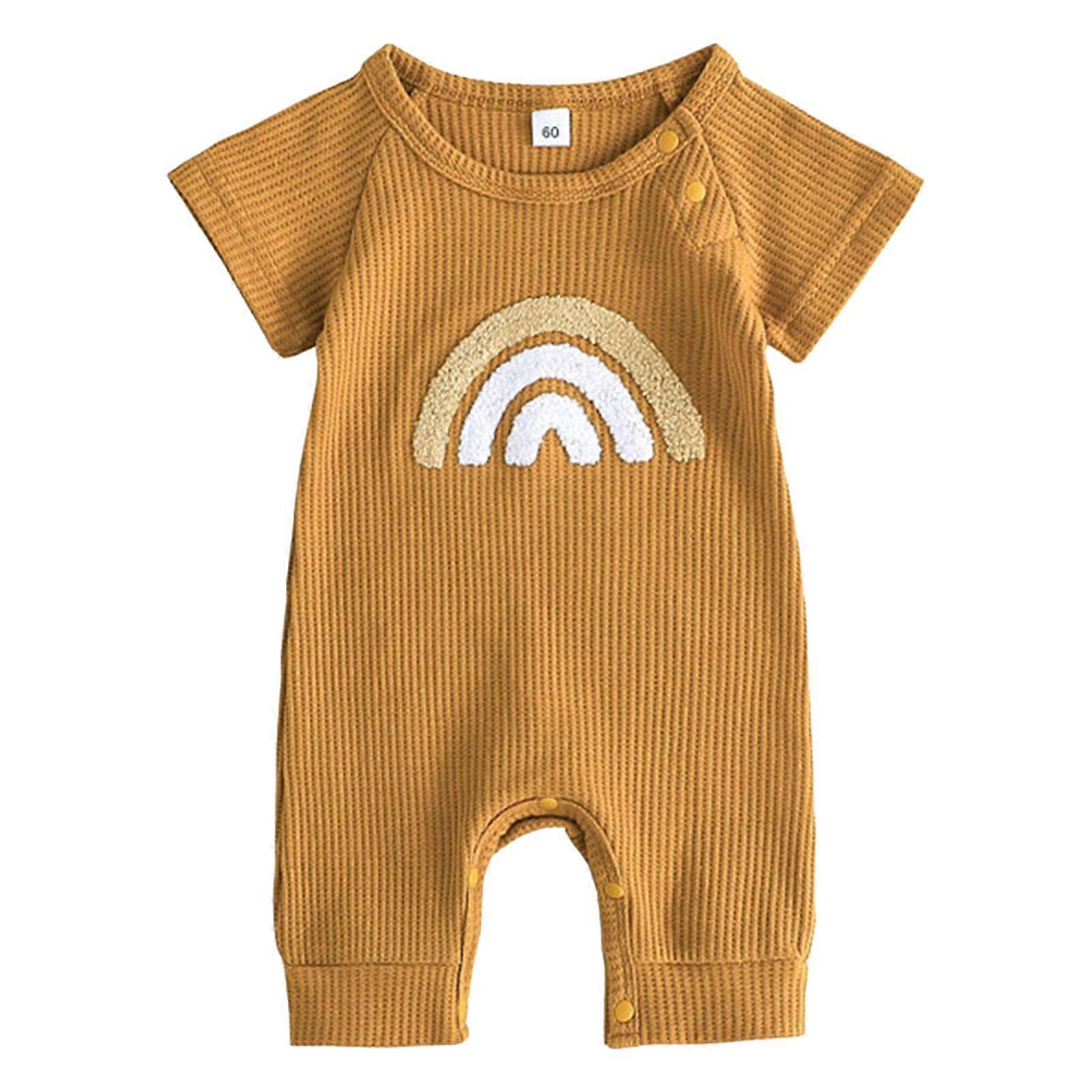 Infant Boys Summer Casual Romper Baby Short Sleeve Rainbow Pattern Print Bodysuit Daily Wear Streetwear Loungewear Sleepwear