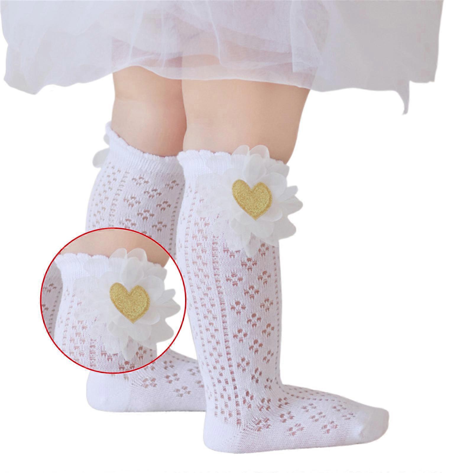Infant Girl Knee High Socks Baby Hollowed Socks Mesh Flower Socks Breathable AntiMosquito Socks White S