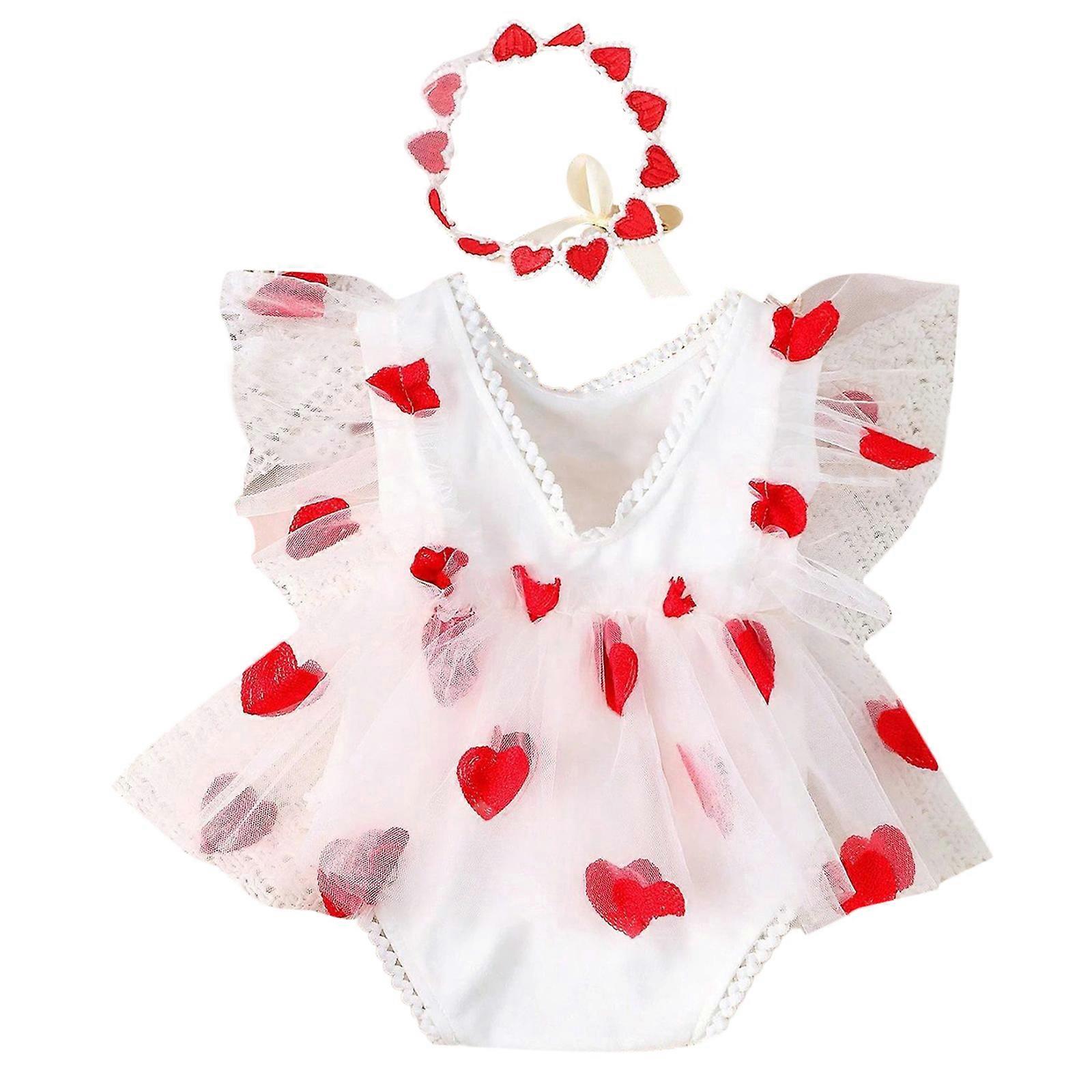 Baby Photography Costume Clothing Embroidery Heart Pattern Headband Romper Photography Props Clothes for Girl 0-1 Month Red