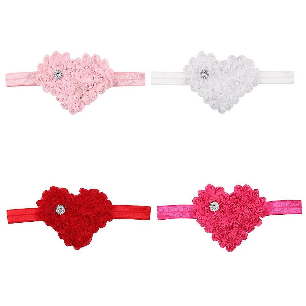 Baby Girl Newborn Headbands Heart Flower Accessories Comfortable Wear Pink 4Pcs