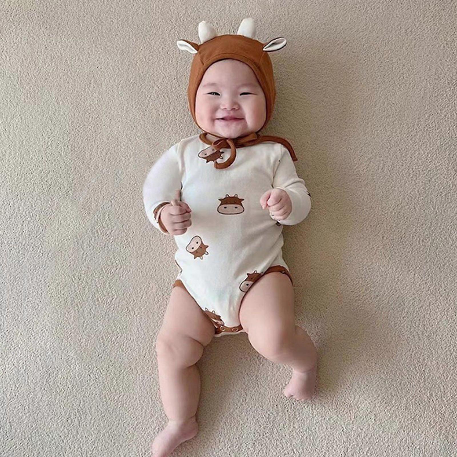 Baby Boy Girl Romper Hat Set Long Sleeve Cute Bodysuit Soft Cotton Outfits Jumpsuit Gift Toddler Autumn Spring Clothes 73cm
