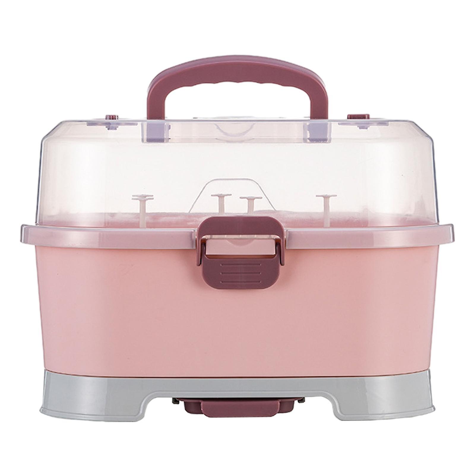 Baby Bottle Drying Rack Organizer Box Cutlery Container Home Kitchen Travle Pink