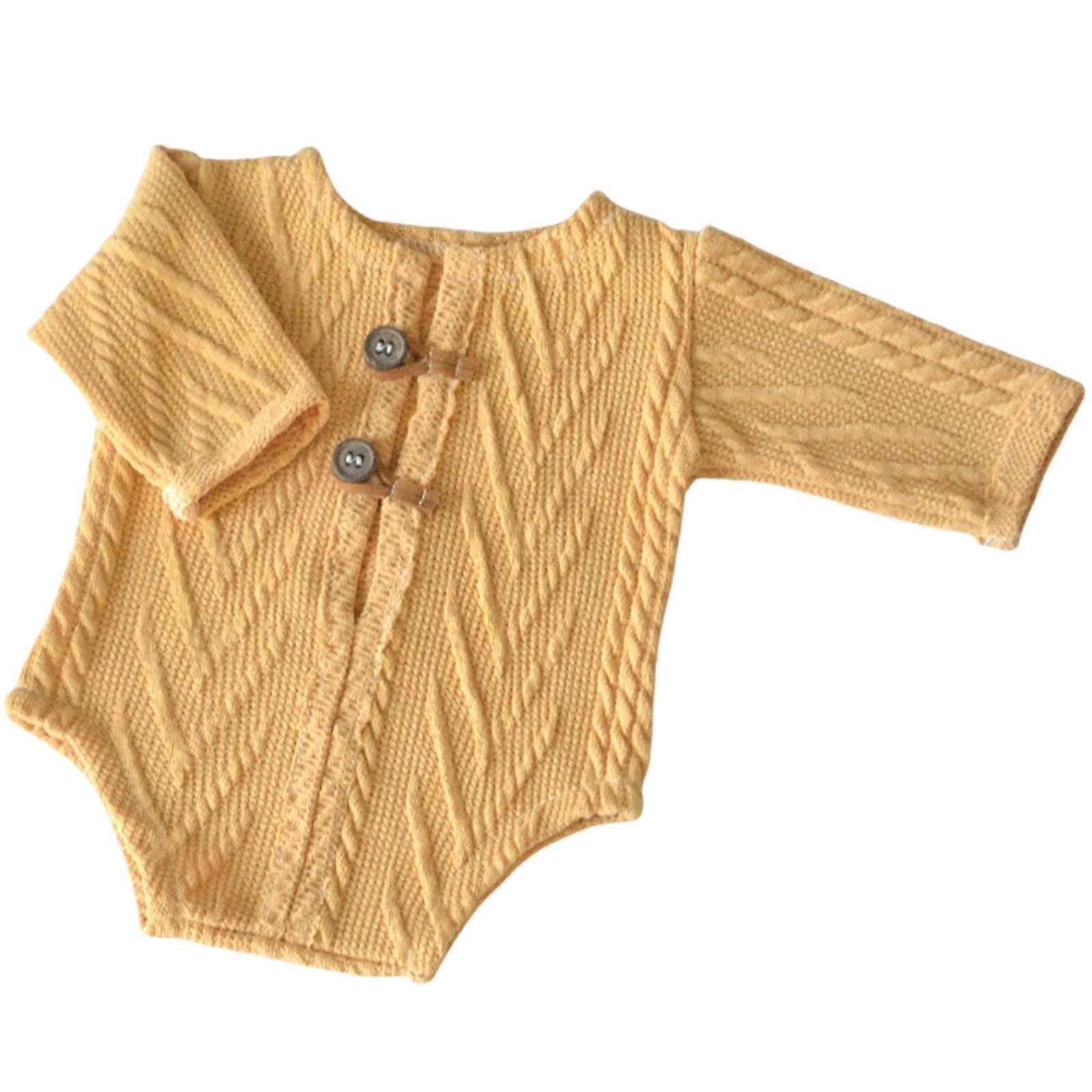 Baby Photo Romper Warm Knitted Jumpsuit Newborn Photo Props Photography Clothing Professional Photostudio Accessories Yellow