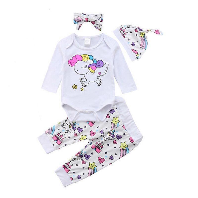 Infant Baby Boy Girl Clothes set Cartoon Dinosaur Unicorn Romper+Pants+Headband+Hat 4 Pieces Toddler bebe kids outfits set