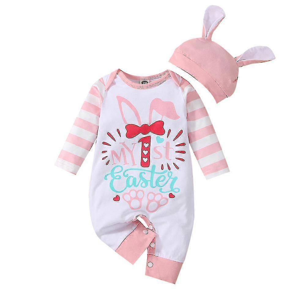 Infant Baby 1st Easter Bunny Long Sleeve Romper One Piece Jumpsuit With Hat Casual Outfits Set
