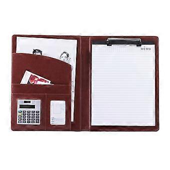 Business Folders Pu File Holder Document Storage Office Supplies Brown 32.2x24.5cm Notepad Included 1Pack