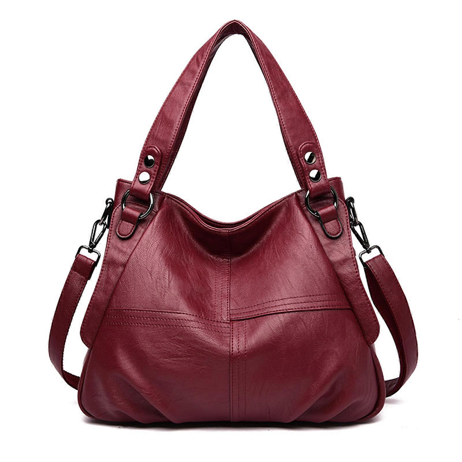 Shoulder Bags for Women PU Leather Crossbody Satchel Purse Retro Tote Bag Handbag Red