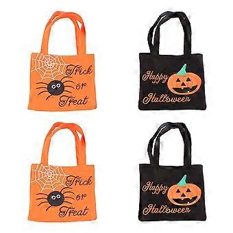 Halloween Tote Bags for Kids Orange Non-Woven Fabric 4Pcs Carry Candy and Small Items