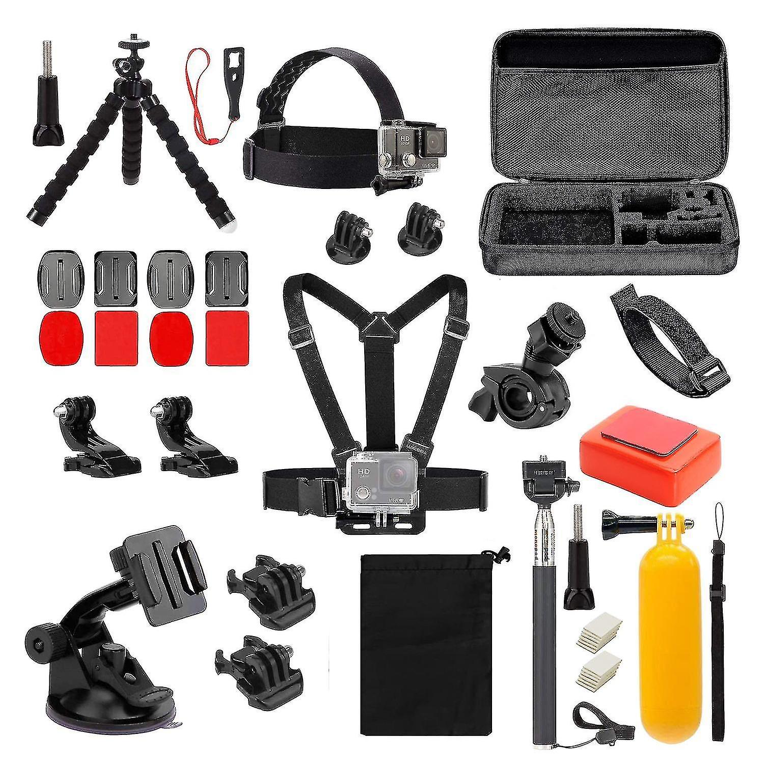Camera Accessory Sets features: Accessory bag for GoPro with 39 Parts Color: we send based on the color or size of the main image of the product page. Quantity:we send based on quantity on title, if there is no quantity in the title, we send based on description. If you have a GoPro camera, you also have a need to attach it to various things. You could make shaky cam your thing, but doesn't handheld go against the whole purpose of having an action camera? We think you should be given the freedom to do whatever you want with your GoPro and therefore we have an accessory kit for you. Two handles, a tripod, a harness and a whopping 14 different mounts to customize your video. Finally you can go pro - for real. - Large 39-piece GoPro kit with bag - Mounts, harps and everything you need - Capture your adventures just the way you want Specs: Color: Multicolor Material : Plastic, metal, polyester Dimensions, packaging: approx. 30 x 21 x 8 cm Compatibility: All GoPro models Packaging Contains: 1x Telescopic Handle 1x Floating Handle 1x Adjustable Stand 1x Chest Harness 1x Bike Handlebar Attachment 1x Suction Cup Bracket 1x Main Bracket 1x Float 1x Velcro 1x Wrench for GoPro Screws 2x Stativadapter 2x Quick Release J Mounts 2x Quick Release Mounts 2x Screws 4x Sticky Brackets 4x Double-Sided stickers 12x Anti-Fog Patches 1x Storage Bag 1x Storage Bag
