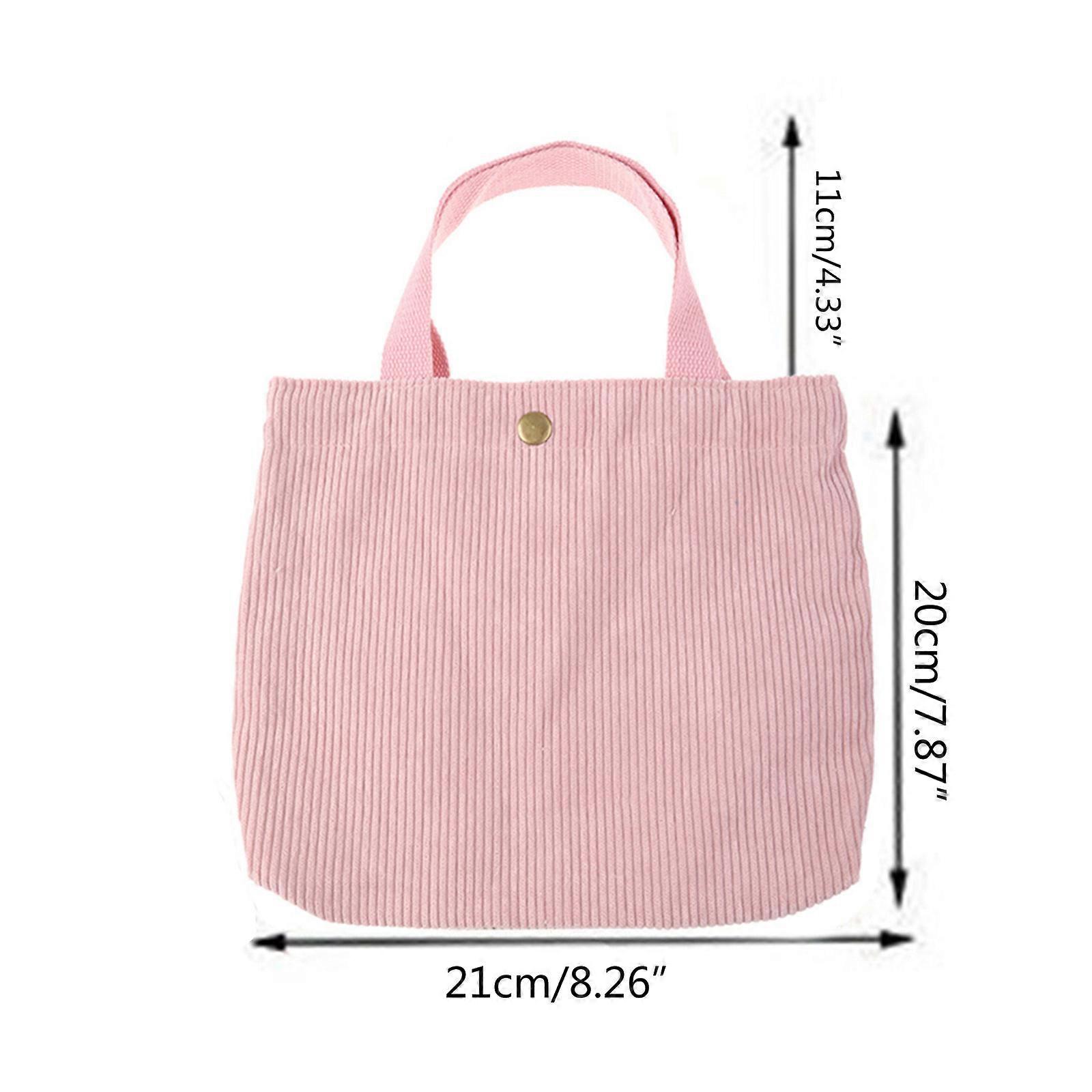 Corduroy Canvas Lunch Bag Solid Color Ribbed Velvet Picnic Storage Tote Handbag Pink