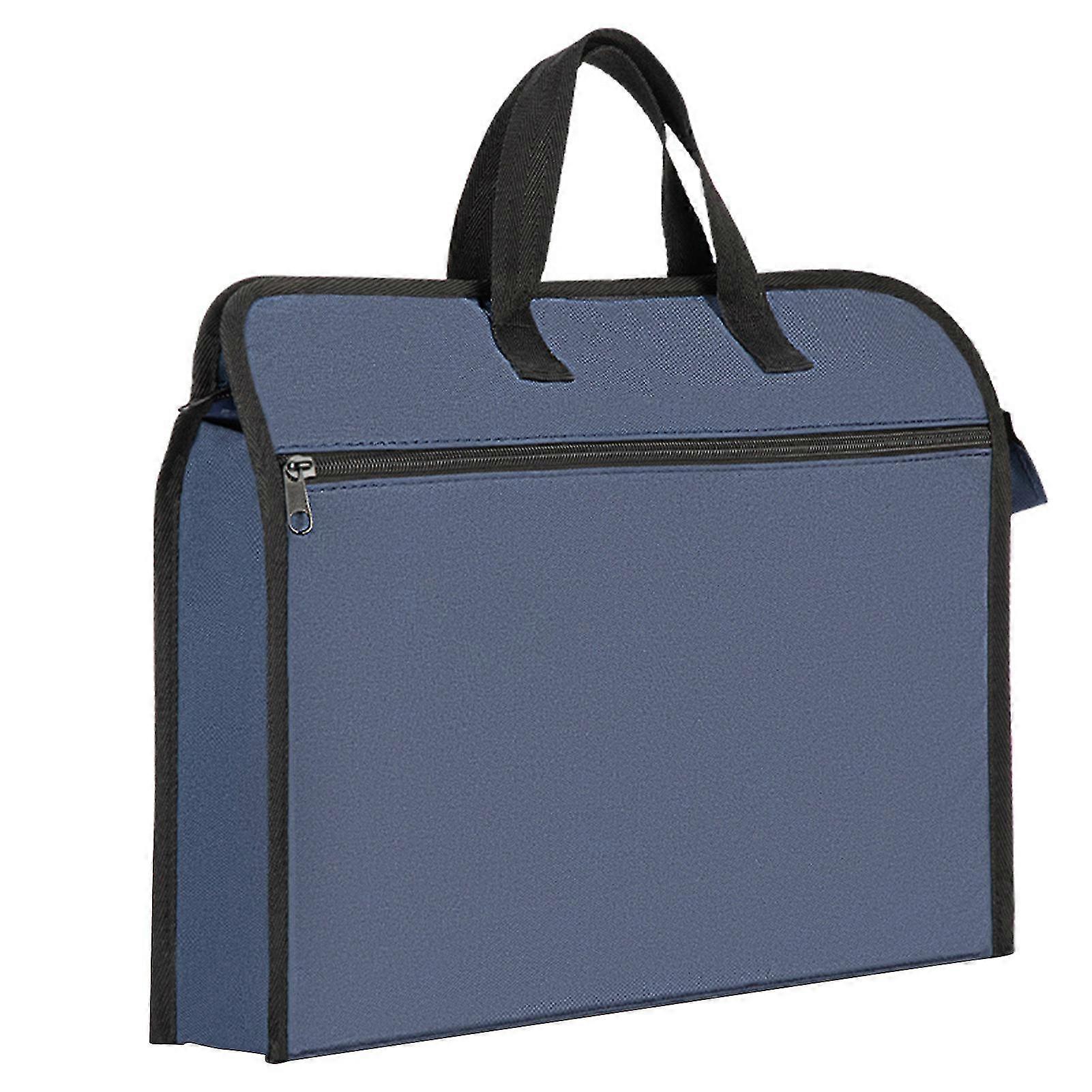 Waterproof Oxford File Bag, Large Capacity Double-tier Office Travel Briefcase - Blue