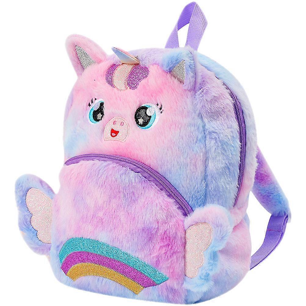 Cartoon Unicorn Storage Bag for Girls Plush Backpack 4Pcs Violet
