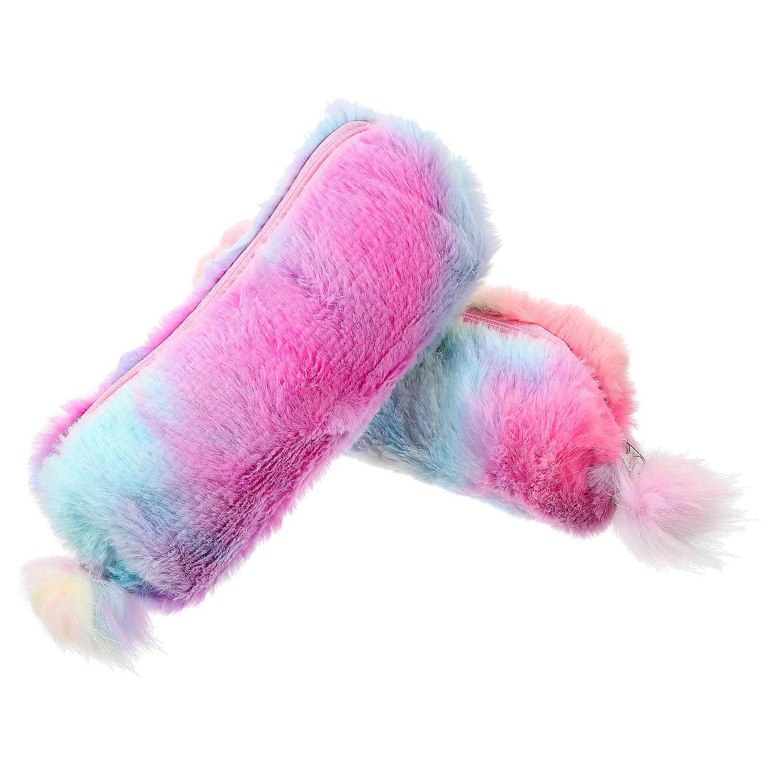 Stationery Organizer Bag Plush Pencil Case Octagonal Gradient Purple Travel Purse 23.00X9.50X7.50cm Storage 2Pcs
