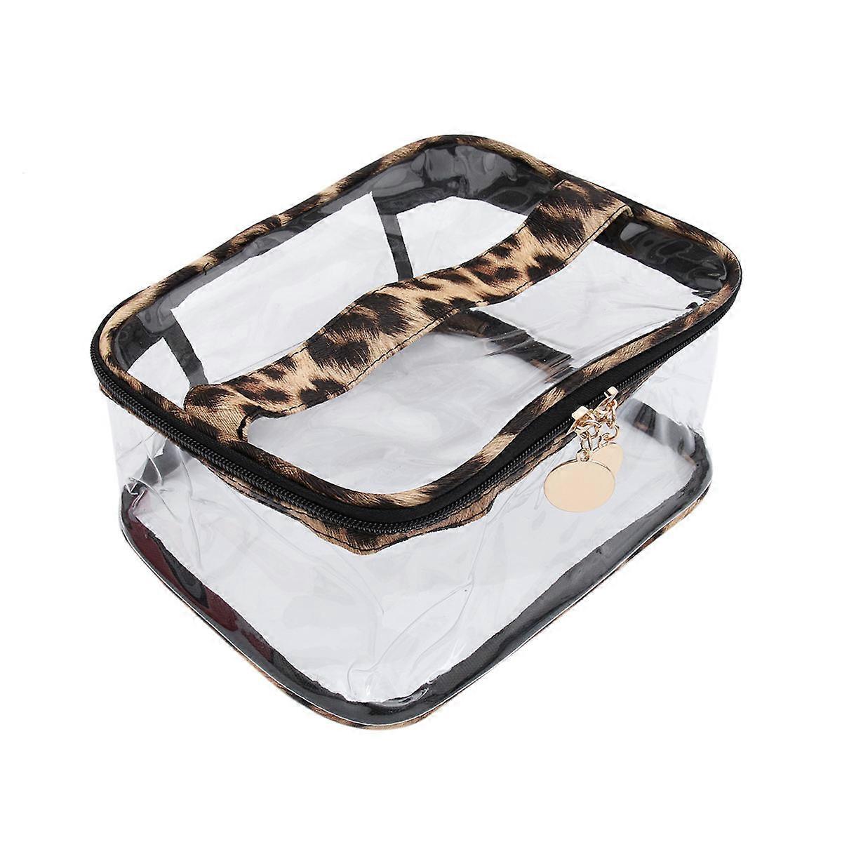 Large Capacity Makeup Bag Leopard Print PVC Transparent Design Toiletry Organizer Travel Storage 21x17x10cm Waterproof 1Pcs