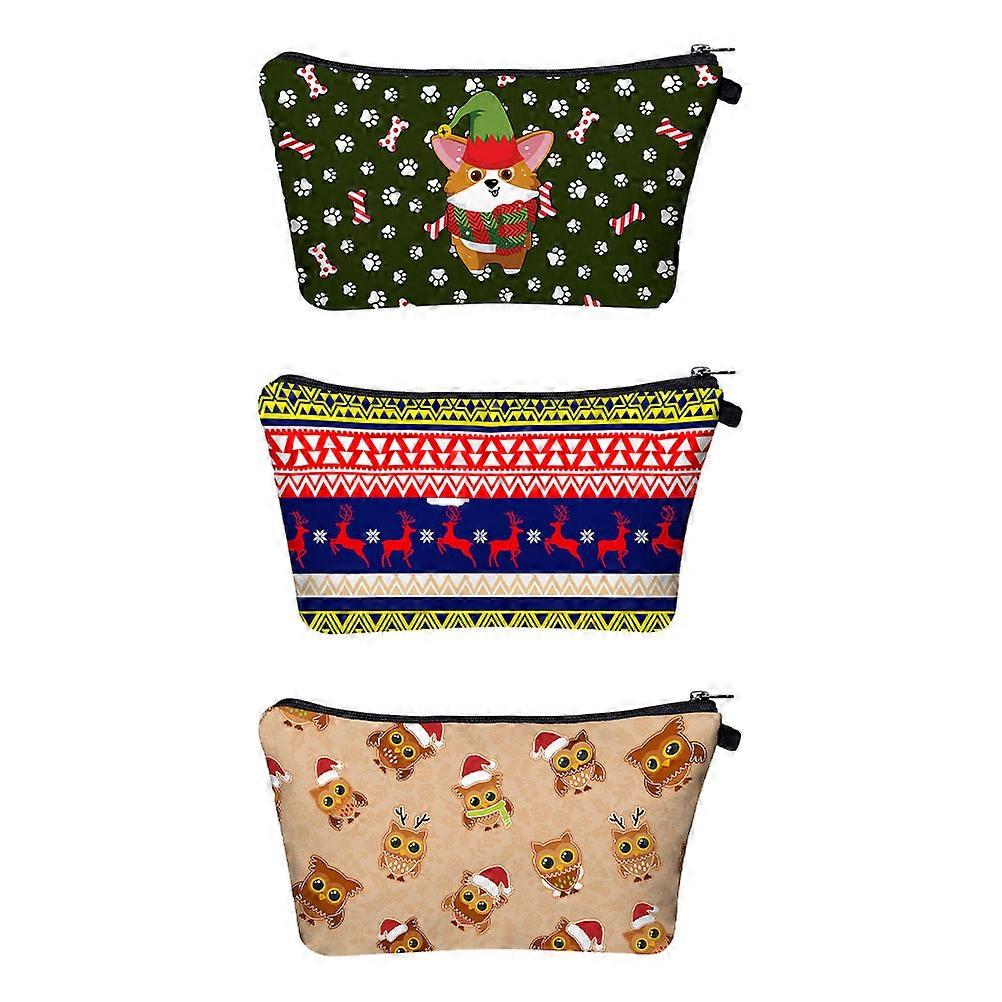 Christmas Cosmetic Organizer Bag for Storage 3Pcs Lovely Owl Makeup Set