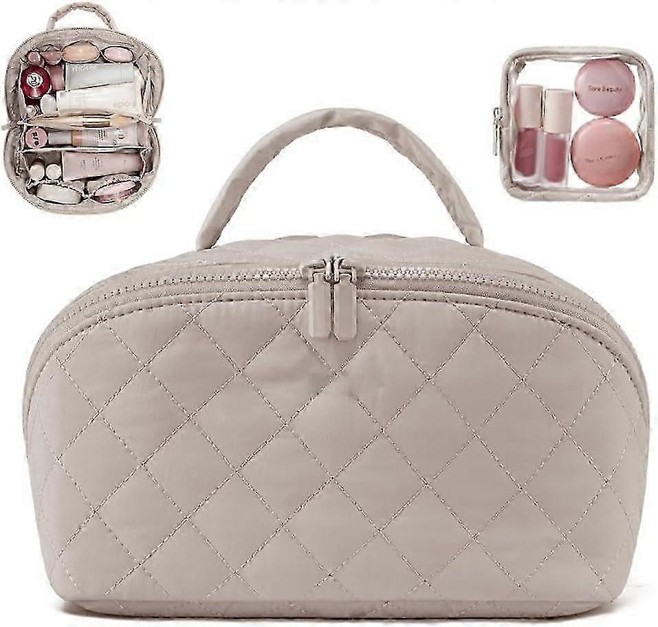 Travel Makeup Bag for Woman, 180 Lay-Flat Design, Waterproof Large Capacity Makeup Organizer Pouch Open Flat Toiletry Bag, Triple-Proof Interior, Port