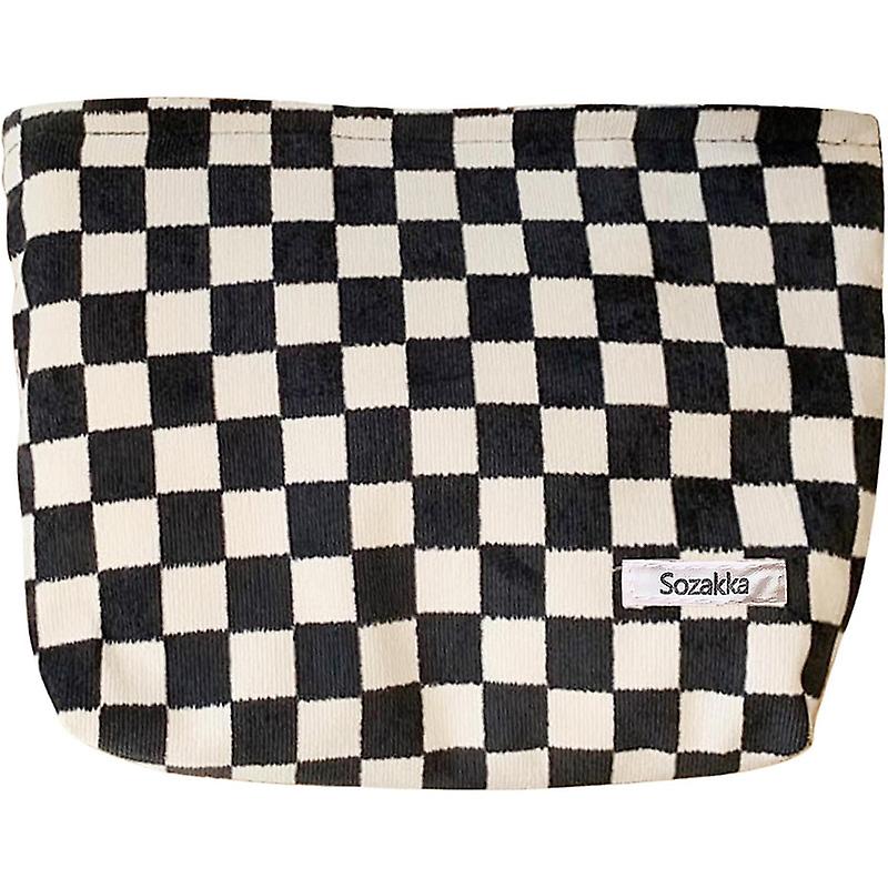 Checkered Makeup Bag Corduroy Cosmetic Bag Pouch with Zipper for Travel