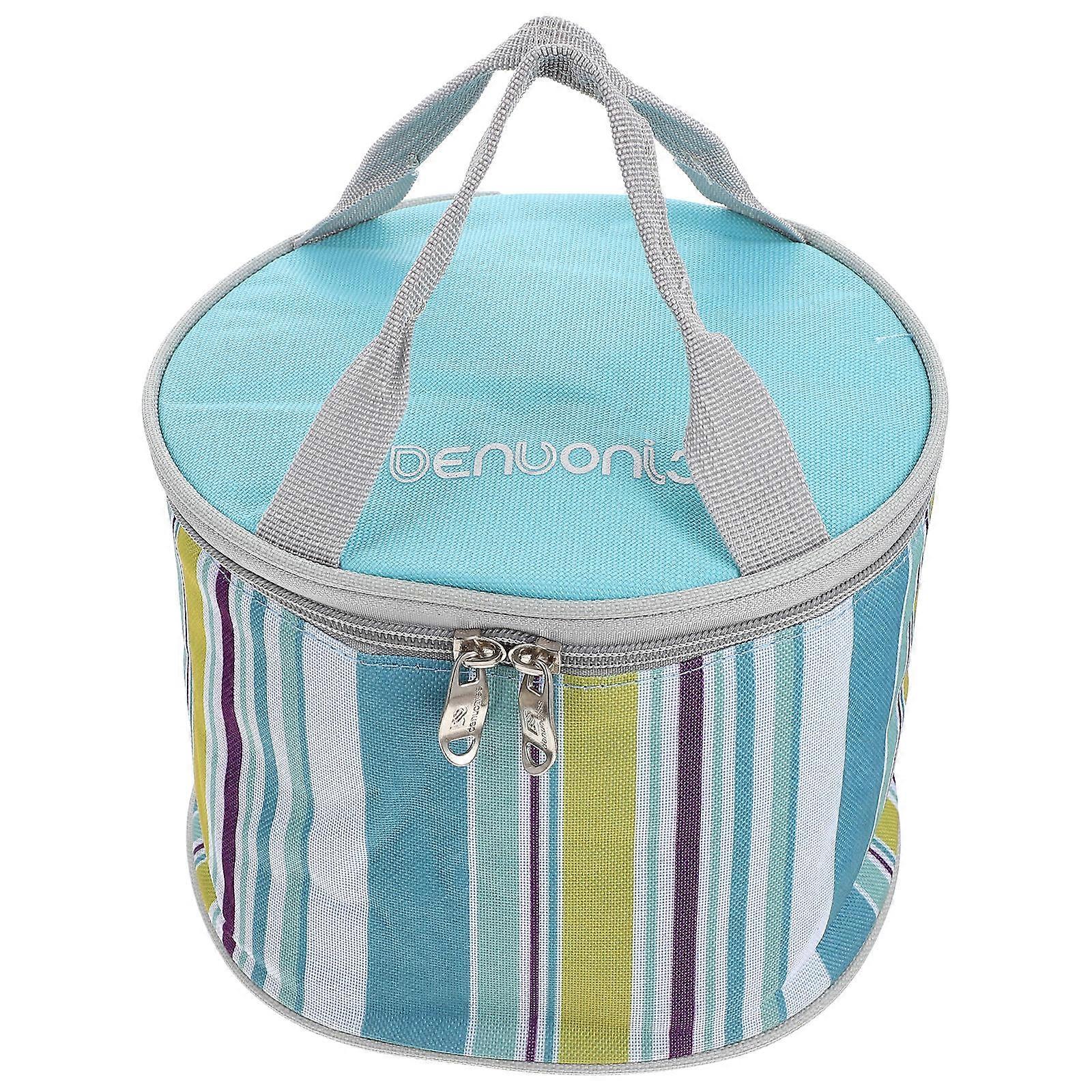 Lunch Bag For Work Large Capacity Insulated Thermal Insulation Bag Light Blue With Three Color Stripes Dirt Resistant 1Pcs