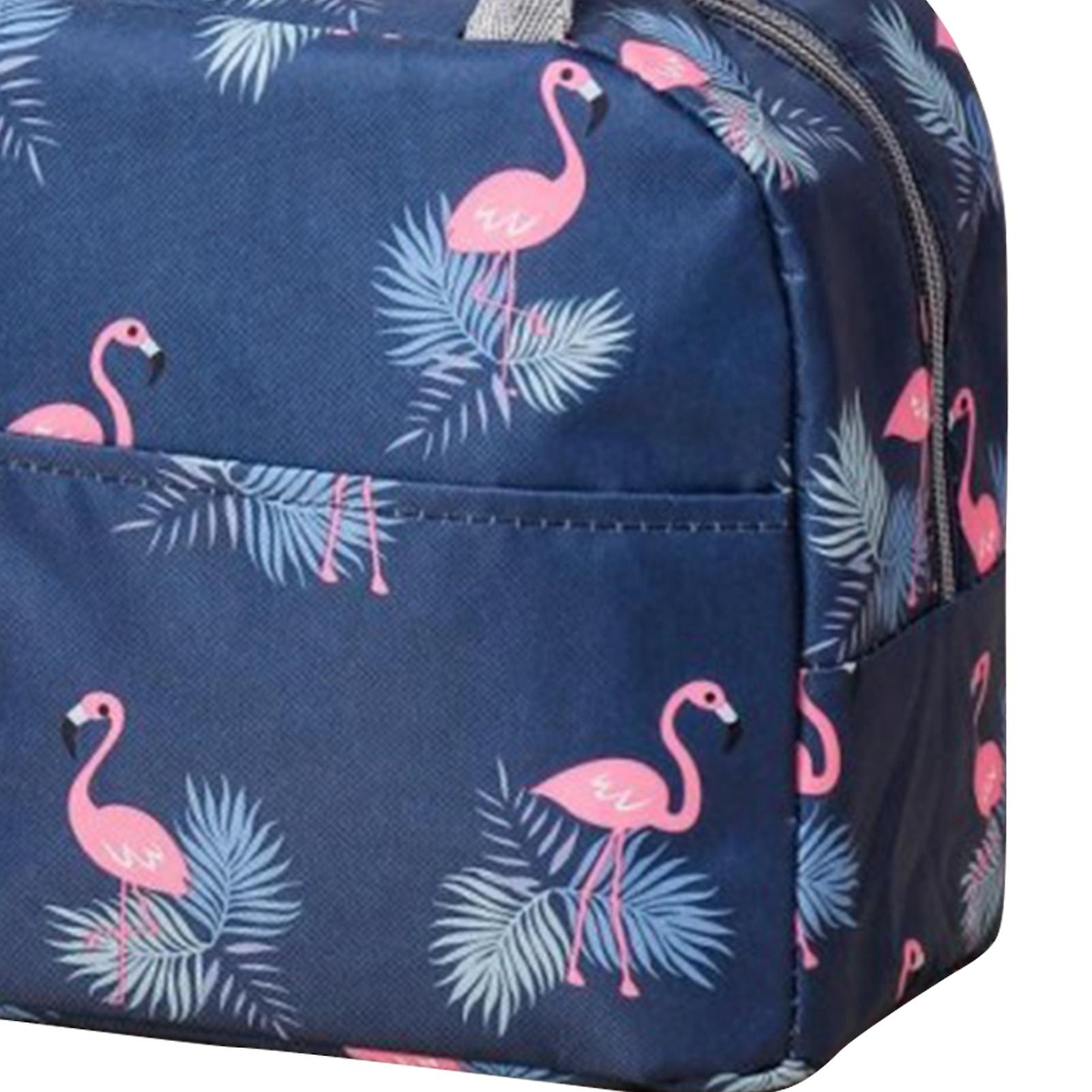 Insulated Lunch Bag Large Capacity Flamingo Pattern Portable Thickened Zipper Lunch Bag for School Work Navy Blue Flamingo