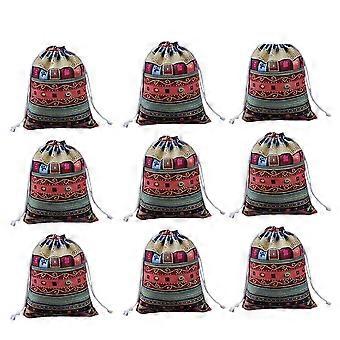 Chinese Fabric Bag Embroidered Drawstring Pouch Closet Storage 10x12 Cm 10Pcs