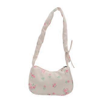 Women Underarm Bag Floral Shoulder Bag School Bag Pleated Armpit Bag Commuting Bag Large Capacity Shopping Bag White