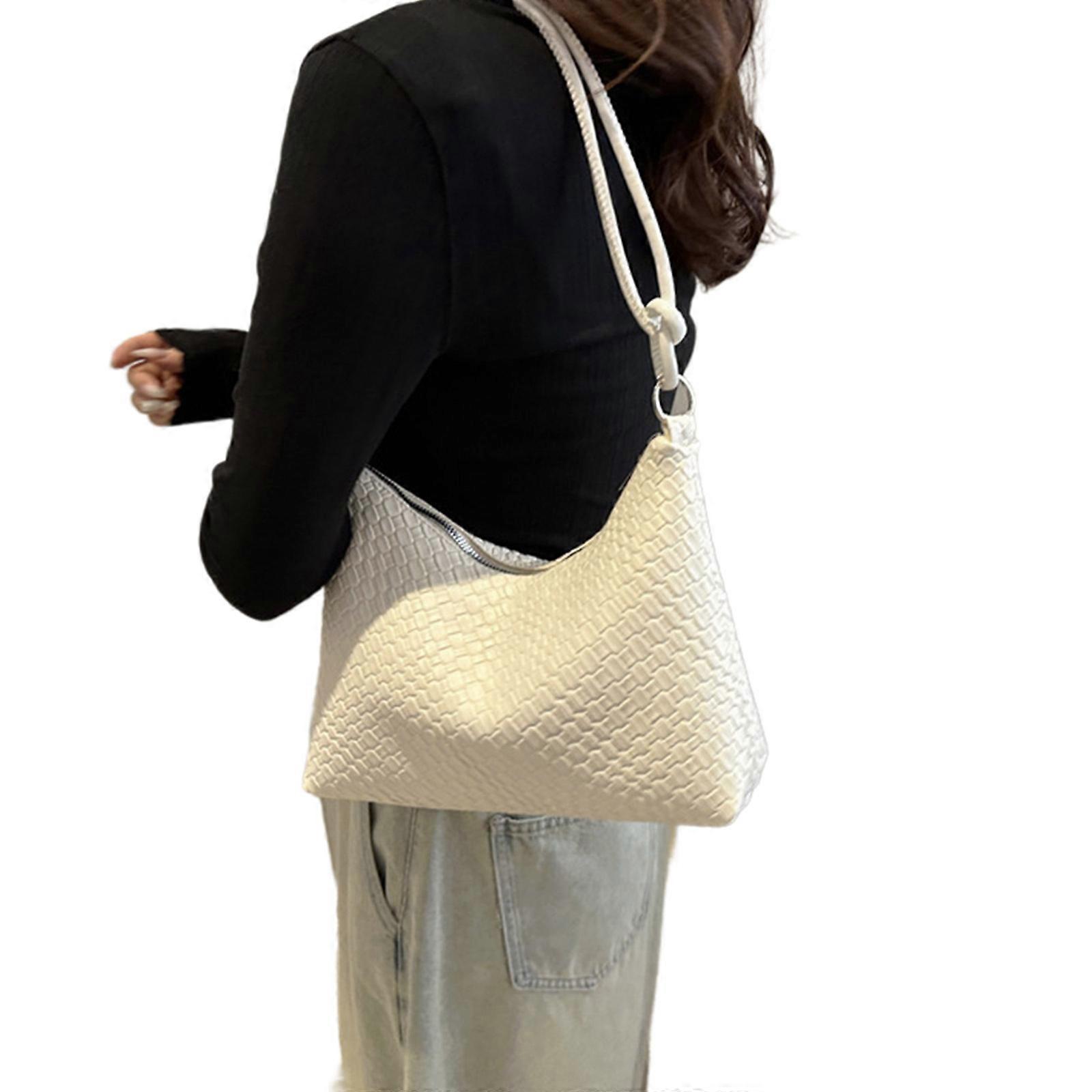 PU Leather Armpit Bag Aesthetic Shoulder Bag Fashion Shopping Dating Bag Large Capacity Underarm Bag for Women Girls White