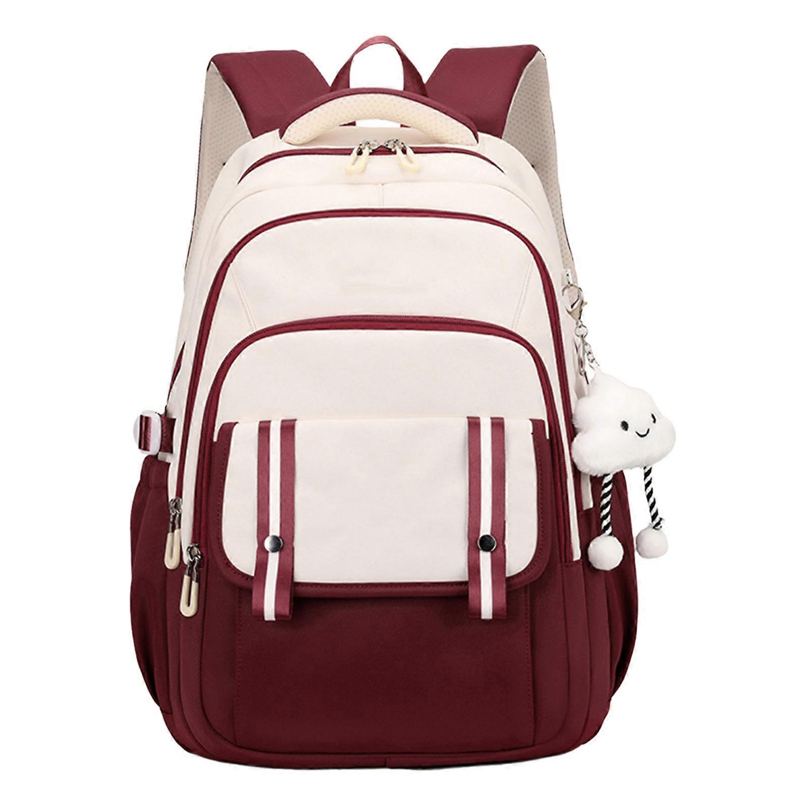 Stylish School Bag Nylon Laptop Backpack Japanese Daypack Travel Rucksack for High School and Middle School Students Claret
