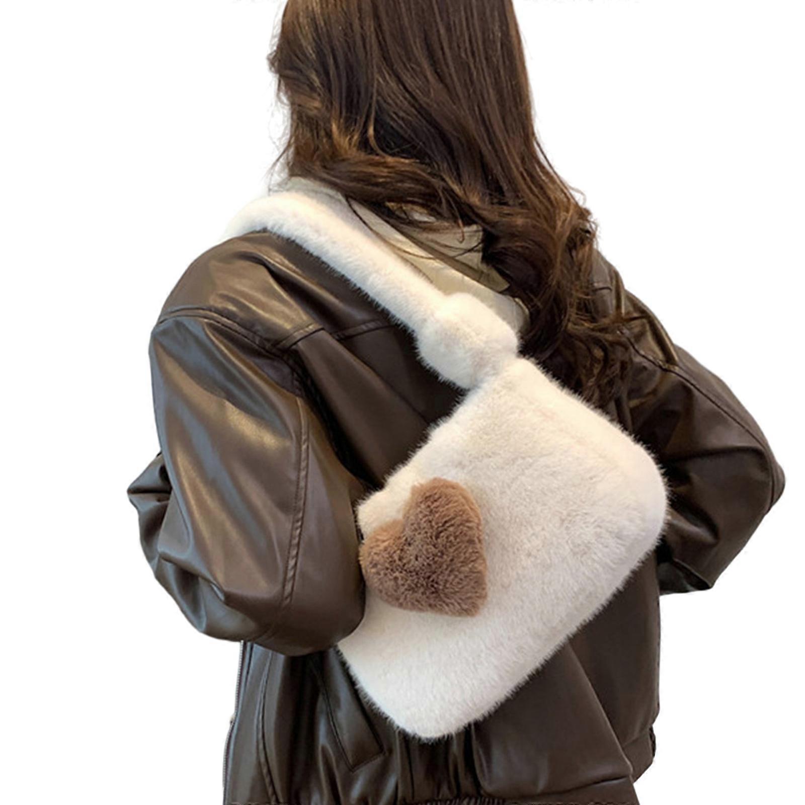 Fashion Armpit Bag Large Capacity Fluffys Shoulder Bag for Girl Women with Heart Pattern Trendy Handbag Underarm Bag White