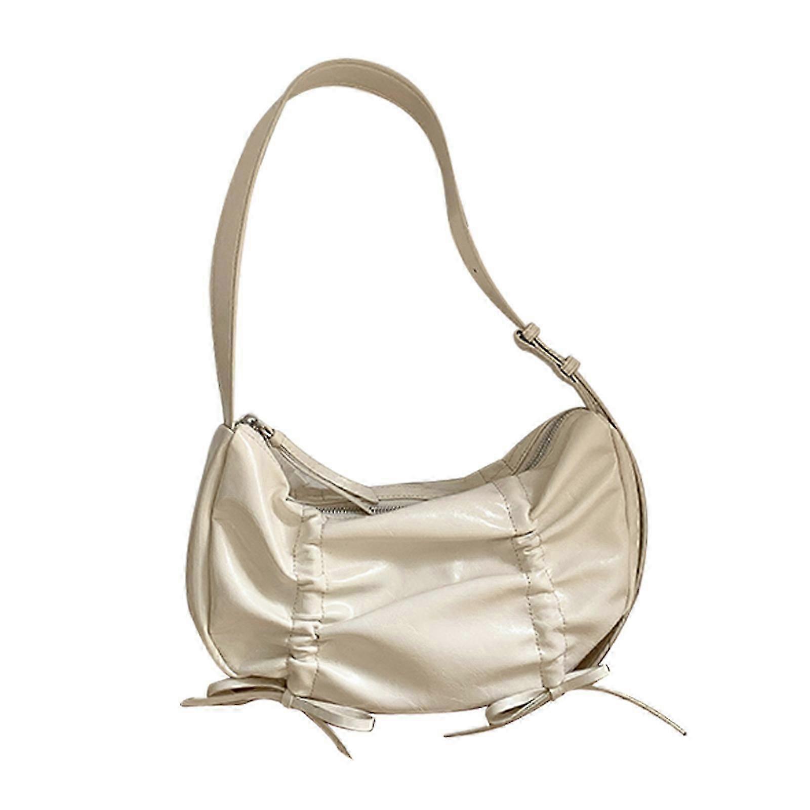 Womens Cute Bowknot Underarm Bag PU Leather Pleated Armpit Bag Fashionable Solid Color Shoulder Purse Small Handbag Silver