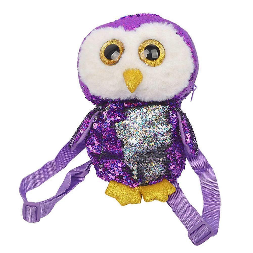 Owl Backpack Purple Sequin Satchel for Kids 3Pcs School Travel Bag