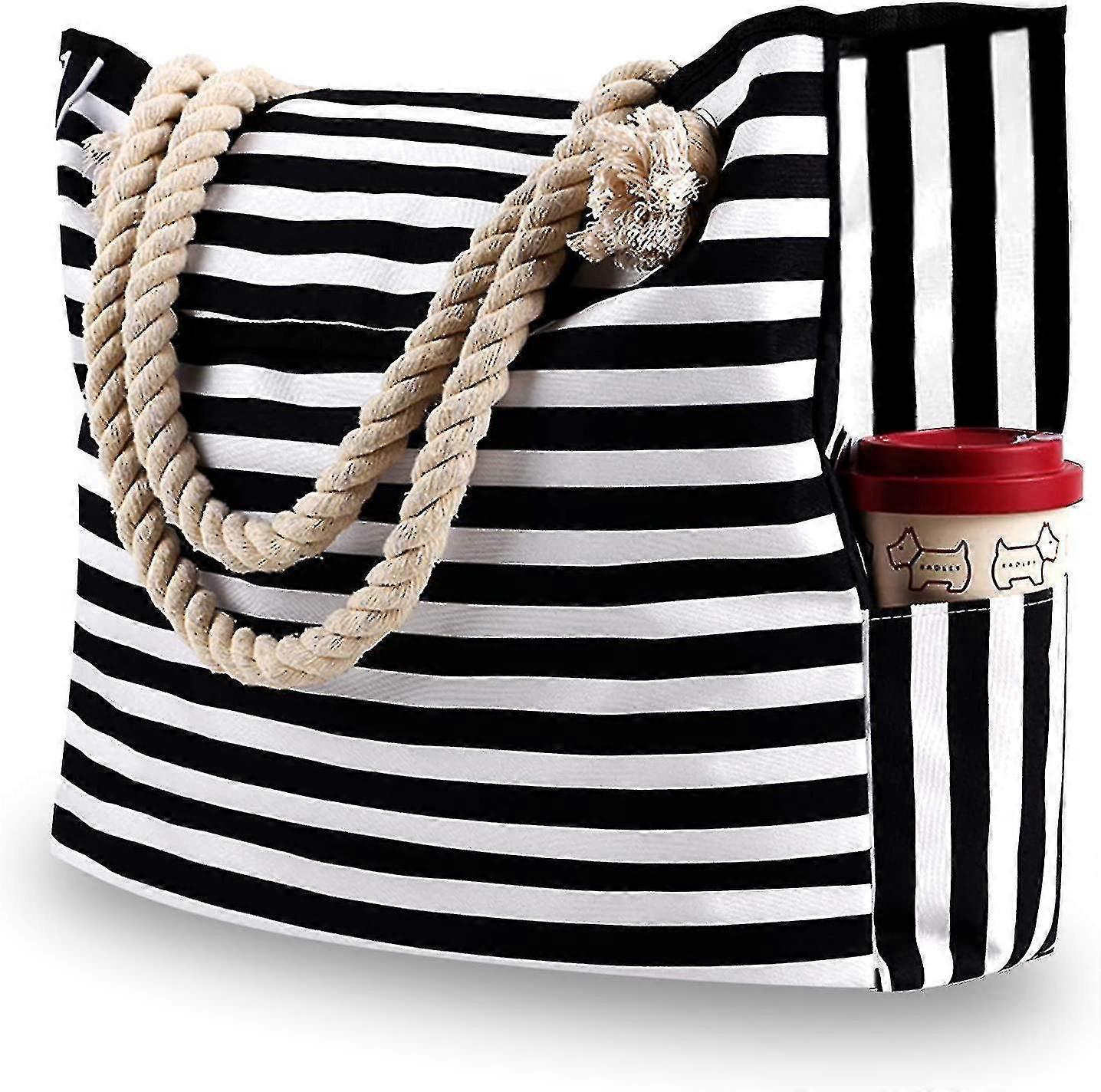 Extra Large Waterproof Canvas Beach Bag With 4 Inner Pockets For Travel Gym Swim And Beach Holiday