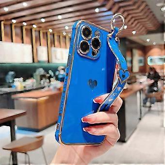 Cute Case for iPhone 15 Pro Max/ 15 Ultra, Cute Love-Heart for Girl Women Luxury Plating Edge Bumper Soft TPU Shockproof Case with Wristband Stand