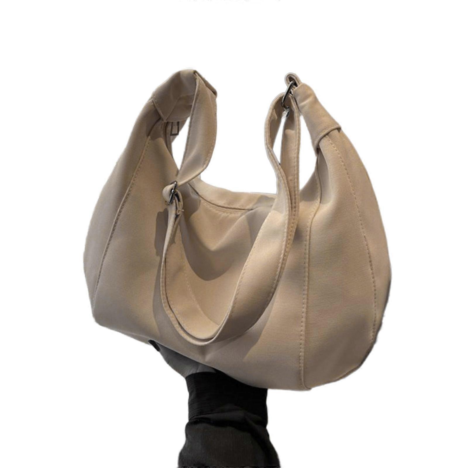Japanese Harajuku Half Moon Bag with Adjustable Strap Large Capacity Canvas Solid Color Crossbody Shoulder Bag for Unisex Khaki