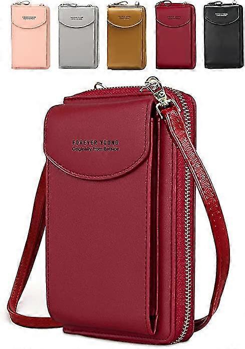 Crossbody Phone Bag For Women, Leather Ladies Cross Body Handbags Mobile Phone Pouch With Long Strap Zips Card Slots