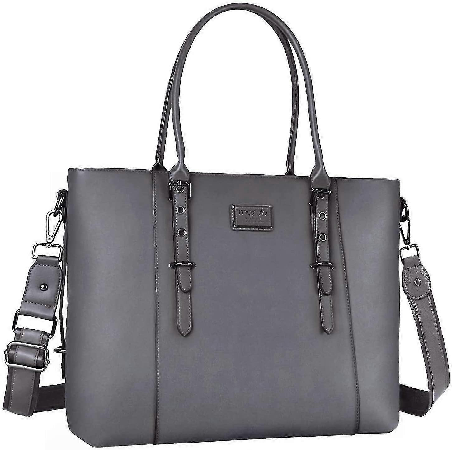 2025 Gray Laptop Tote Bag (Up to 17.3 inch), PU Leather Shoulder Briefcase Handbag Compatible with MacBook & Notebook Large Capacity with Padded Compa