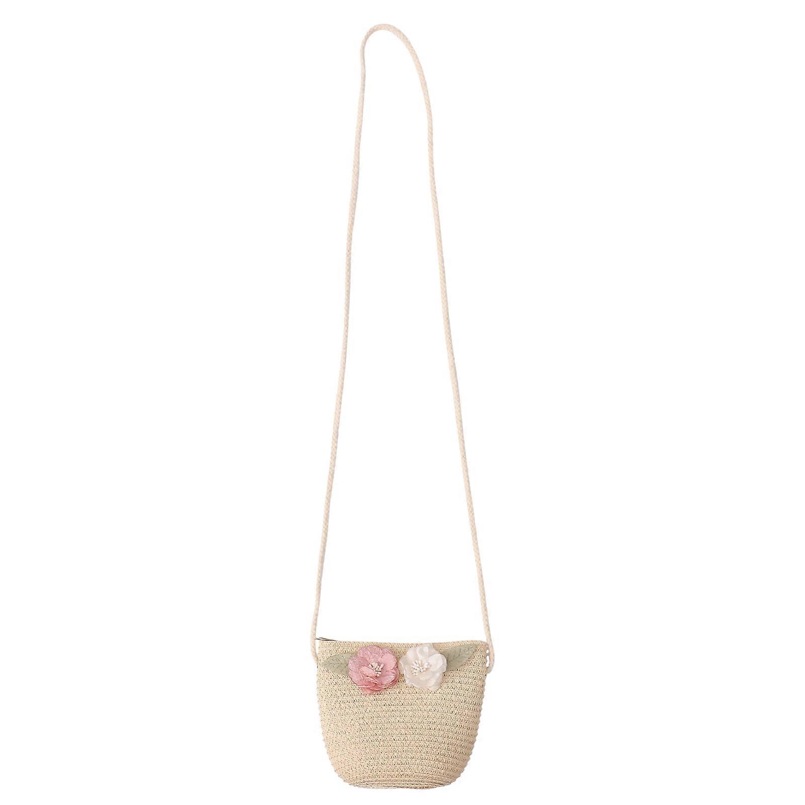 Woven Handbag for Kids Straw Crossbody Bag with Lace Flower 3Pcs Set