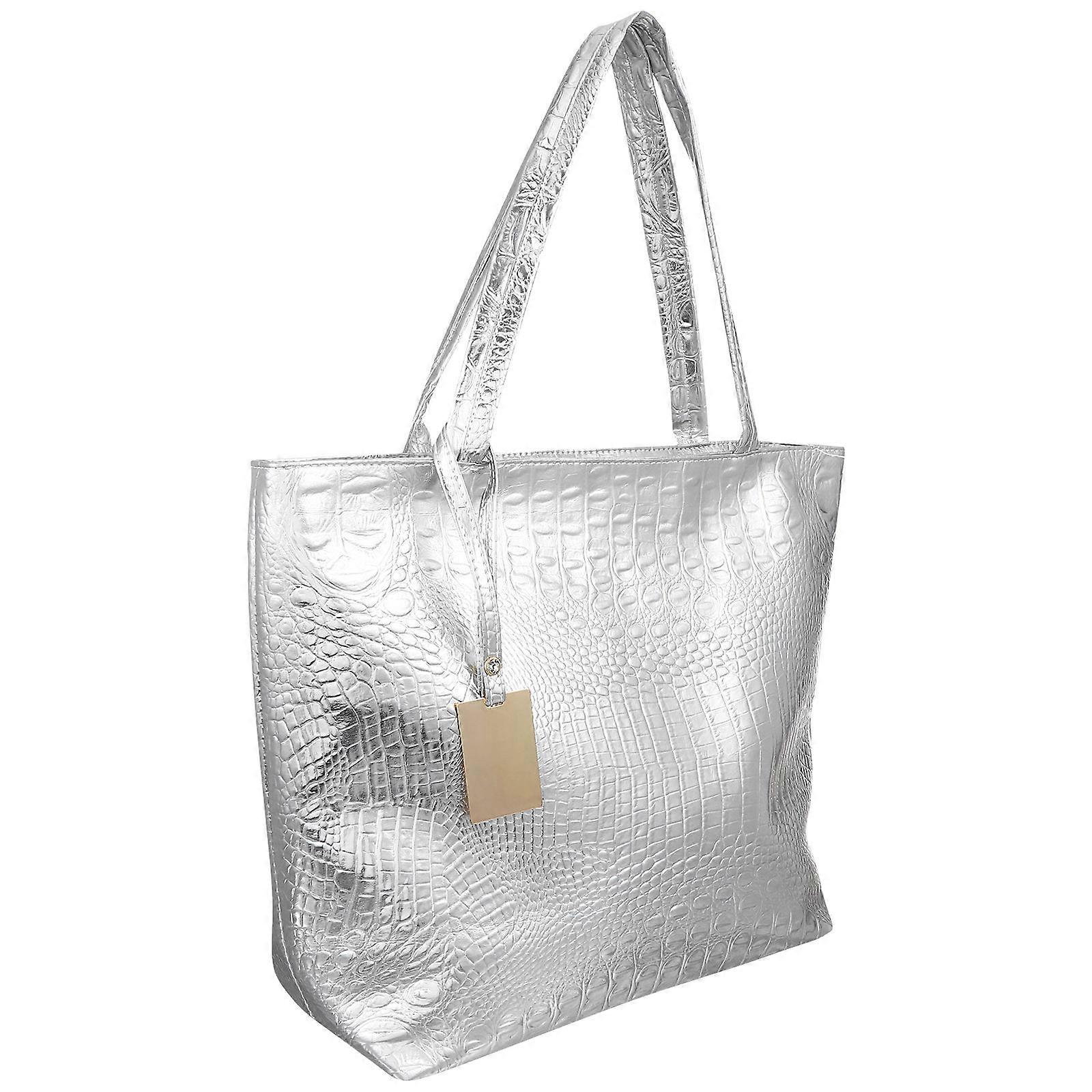 Women Handbag Tote Bag Shoulder Large Capacity 2Pcs Silver
