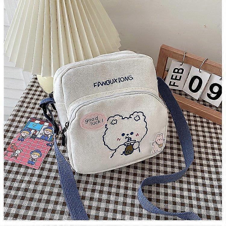 Handbag Small Women Canvas Shoulder Bags Korean Cartoon Print Fashion Bear Rabbit Mini Cloth Handbags Phone Crossbody Bag for Cute Girl