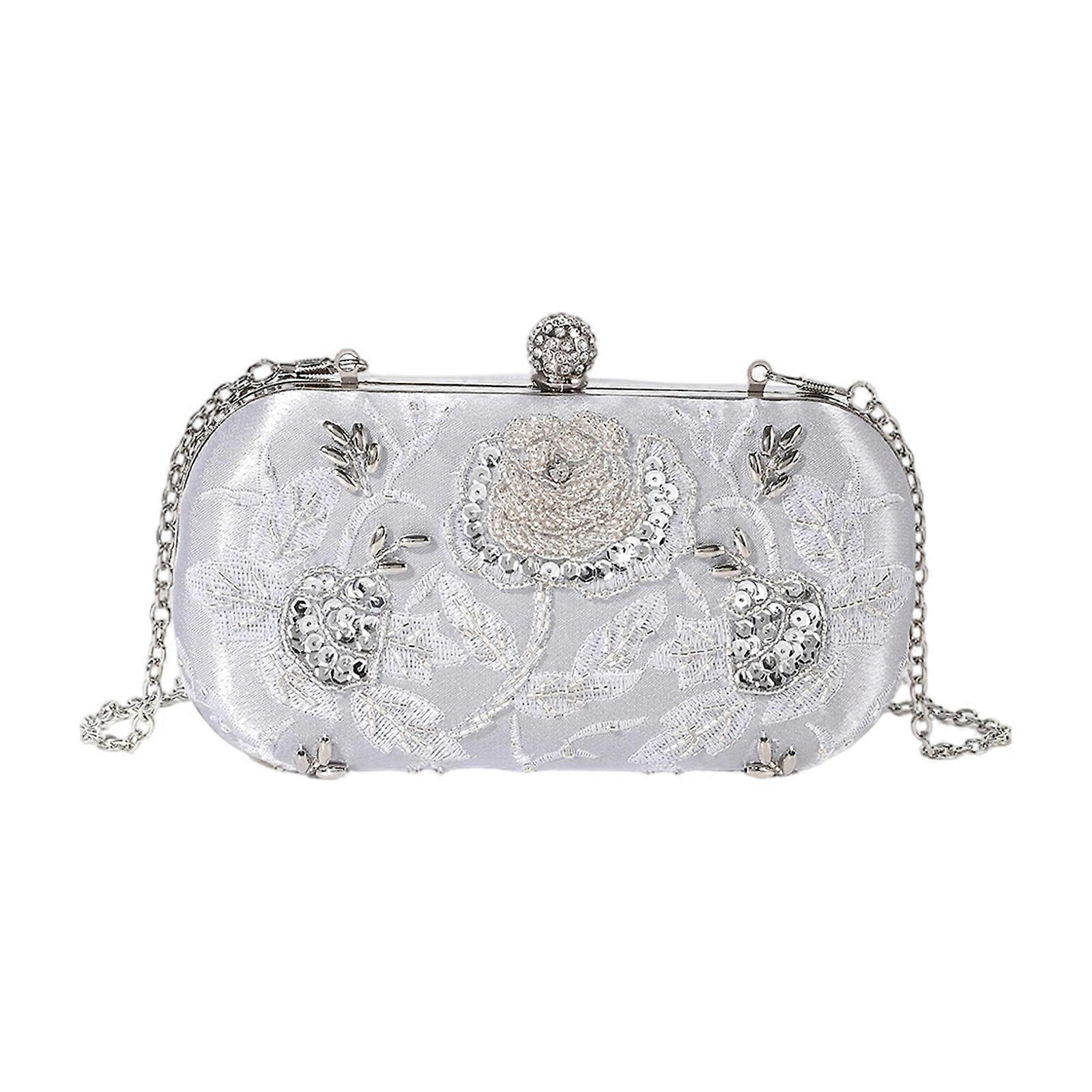 Artistic Beaded Floral Handbag Women's Modern Styles Polyester Shoulder Crossbody Purse Evening Bags 3 Carrying Option Silver