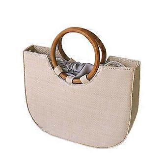 Stylish Round Straw Tote Handbag with Wooden Handle for Beach Summer Travel – Khaki Crochet Shoulder Bag for Casual Outings