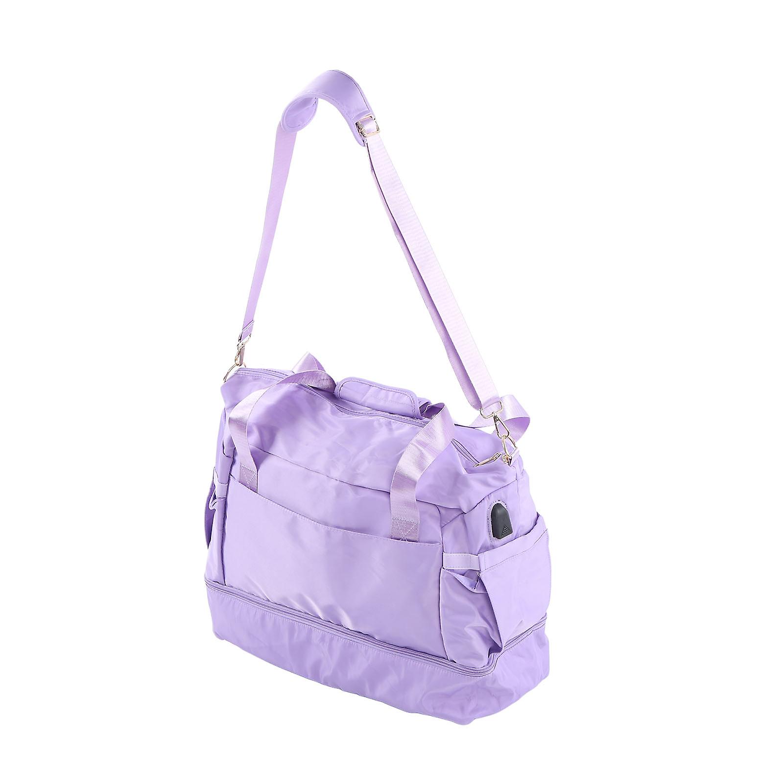 Women Sports Gym Bag Multiple Pockets Large Capacity Waterproof Workout Travel Bag with USB Charging Port for Fitness Yoga Lavender Purple