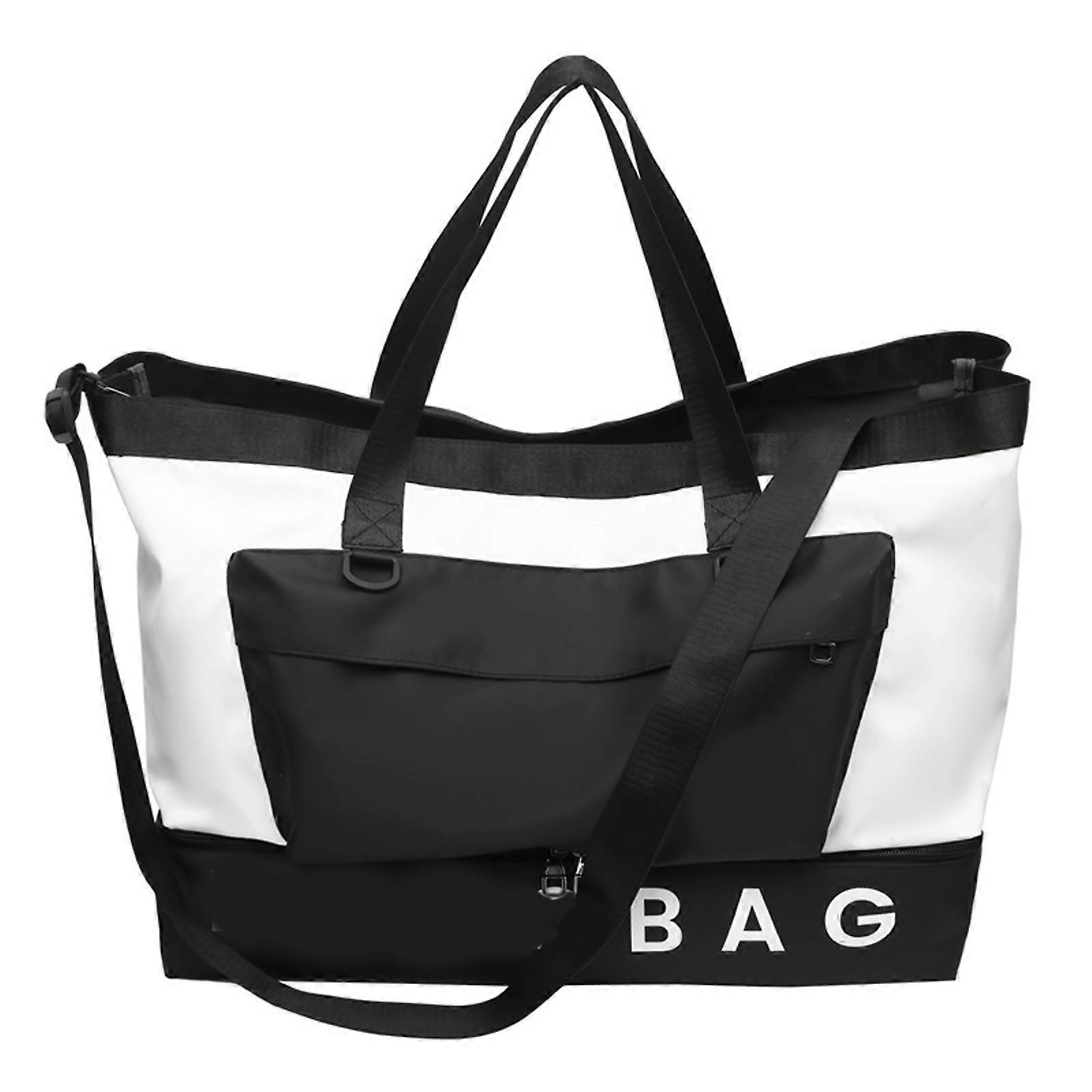 Gym Bag Overnight Bag Training Bag Sport Bag Large Capacity Travel Bag Weekends Bag Contrast Color Fitness Bag white with black