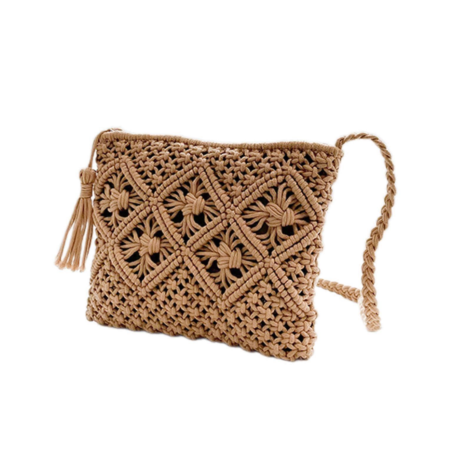 Sophisticated White Woven Satchel for Women Shoulder Bag Featuring Tassels Decoration and Multiple Carrying Styles light coffee