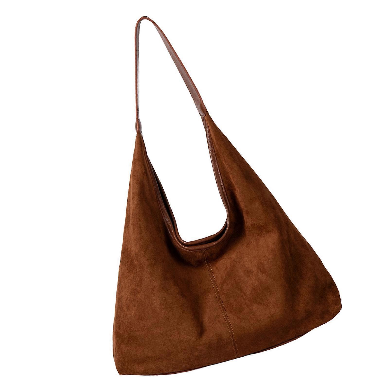 Women's Retro Oversized Shoulder Bag Soft Suedes Handbag With Roomy Interior Ideal For Laptops Essential And Everyday Fashion Use brown