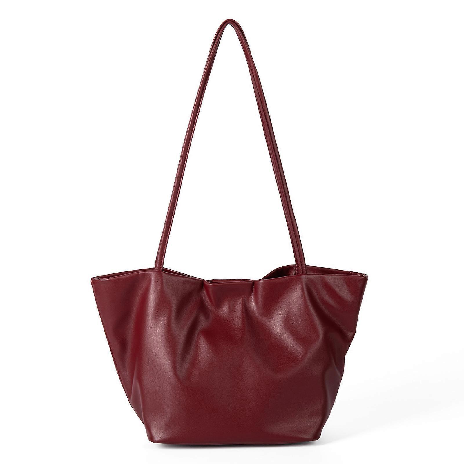 Korean Style Spacious Shoulder Bag Elegant PU Underarm Purse Elegant Casual Handbag For Women Daily Use Burgundy