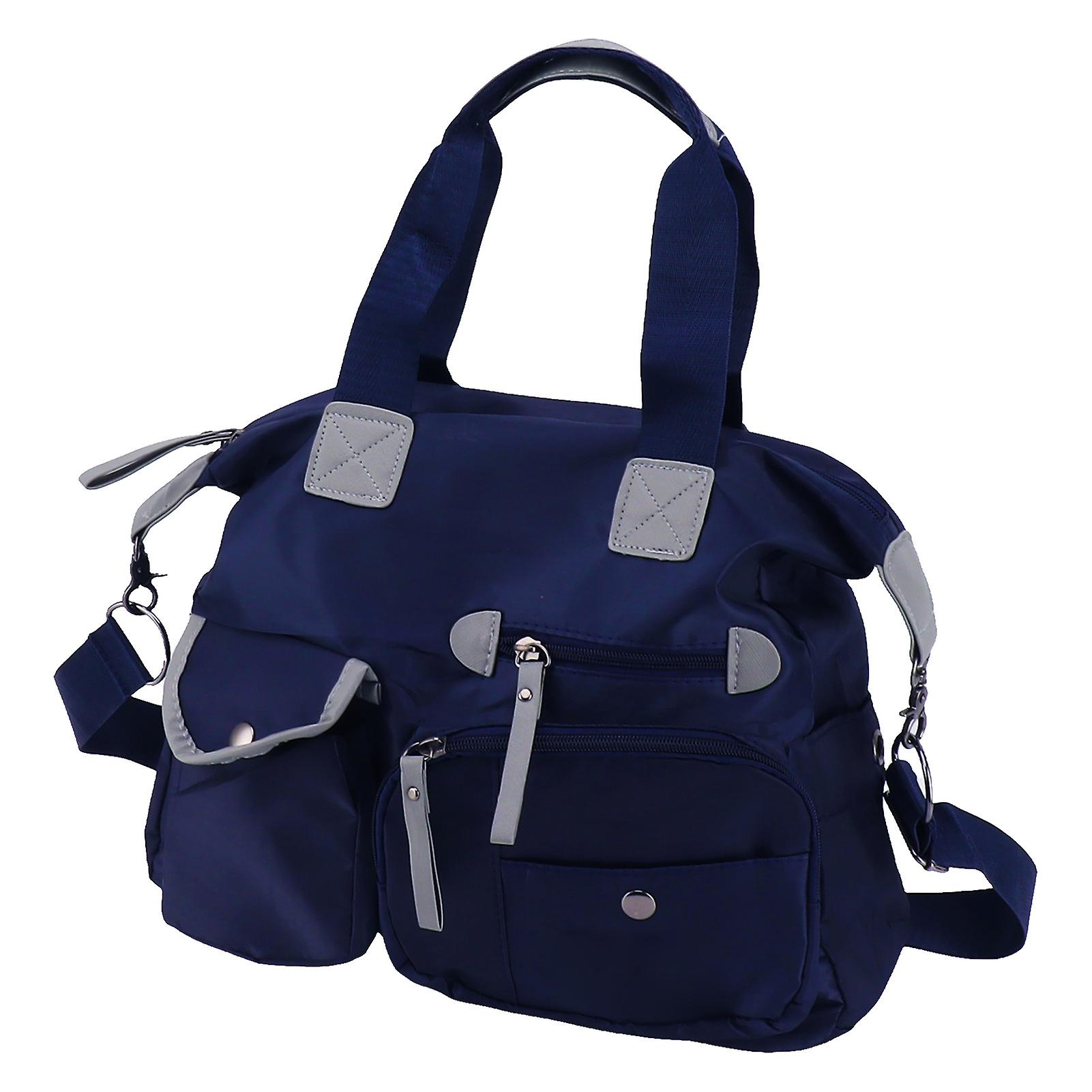 Women Blue Nylon Shoulder Bag Large Capacity Multi-Pocket Zipper